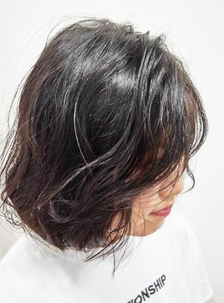 まとまりすぎず、毛先に遊びをもたせた大人かわいいボブスタイル