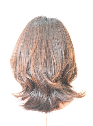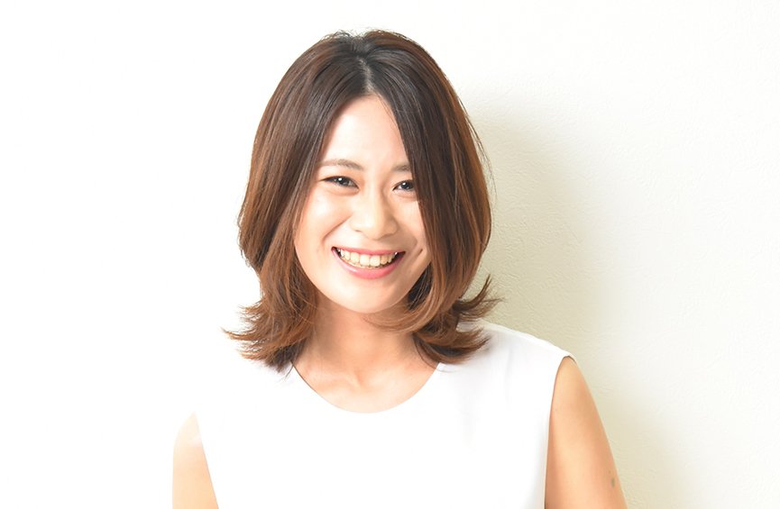 鎖骨丈のミディアムに、長めの前髪からつなげてレイヤーを入れ、顔周りを華やかに。アイロンで毛先をゆるっと外ハネにして、親しみやすいカジュアル感もブレンド。